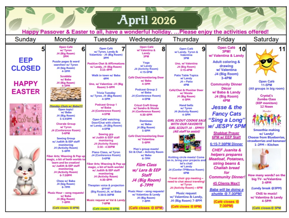 JESPY House is committed to making its programs, services, and buildings accessible to everyone. Automobiles can pull up to designated entrances to safely drop off and pick up clients. Accessible restrooms are available in all JESPY program spaces.