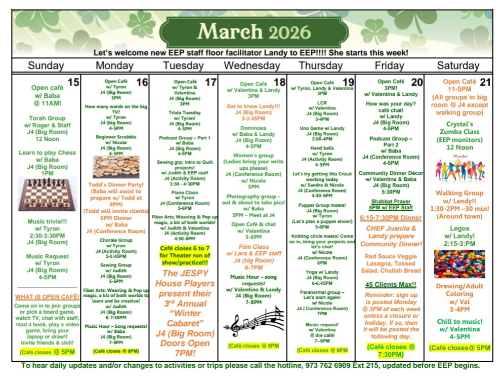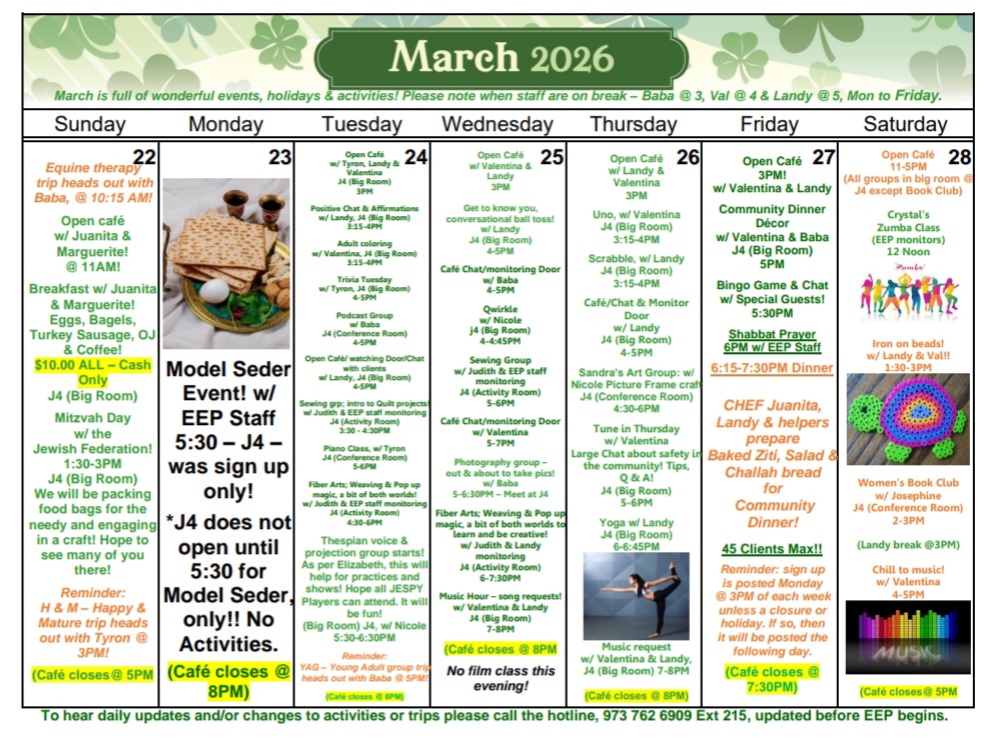 Our annual fundraising event, 2026 JESPY House Spring Gala, will take place June 3rd at Orange Lawn Tennis Club in South Orange, NJ. Join us to celebrate JESPY clients and honor Bottle King; Elizabeth Broadhurst of Little Apple Arts; and Jason Miller of Sonny’s Bagels. Click HERE for tickets and additional information.